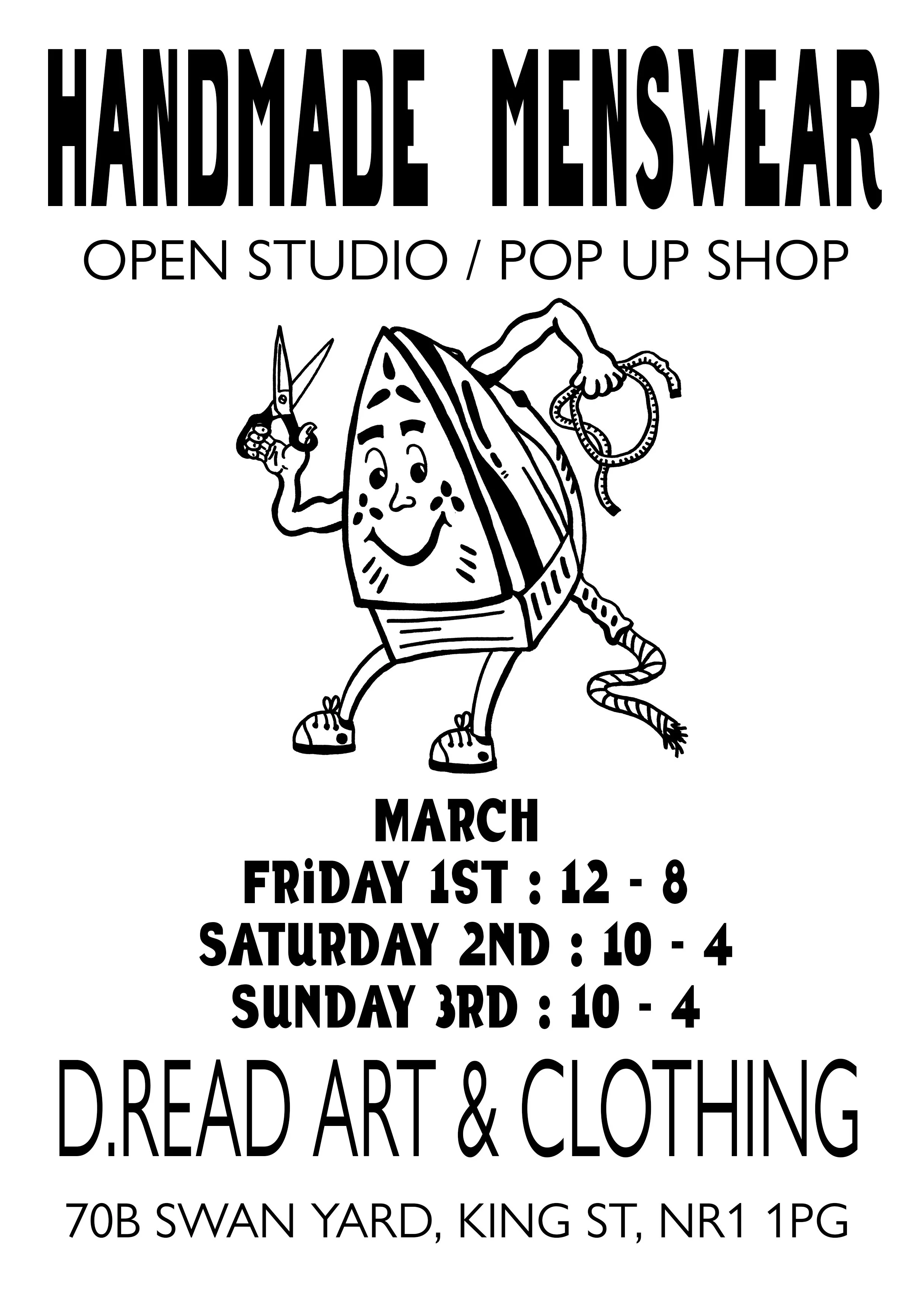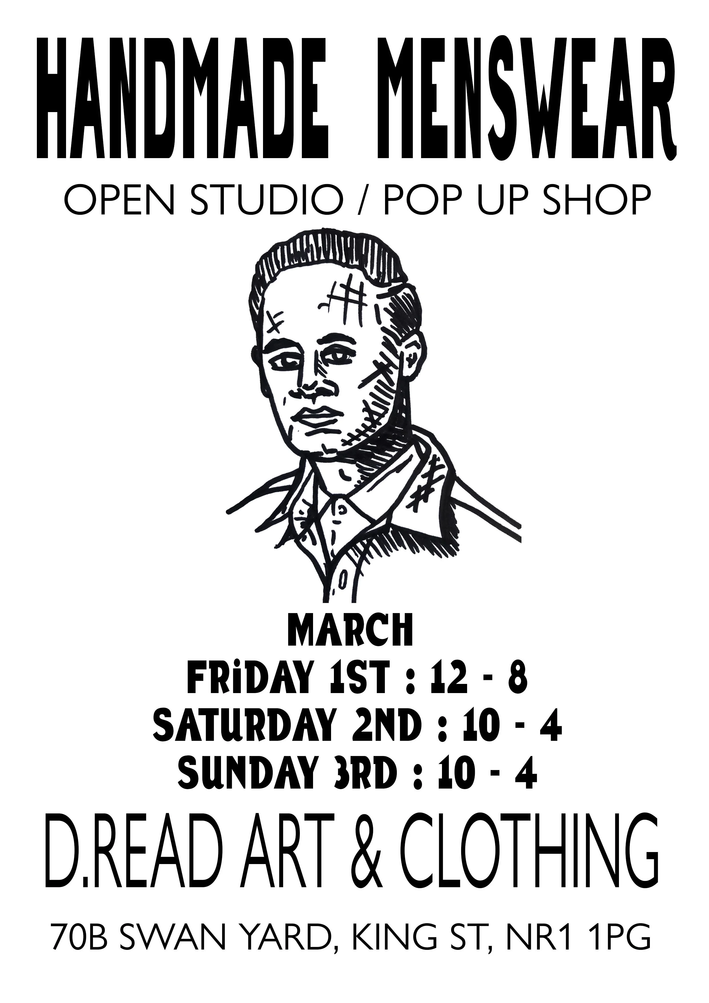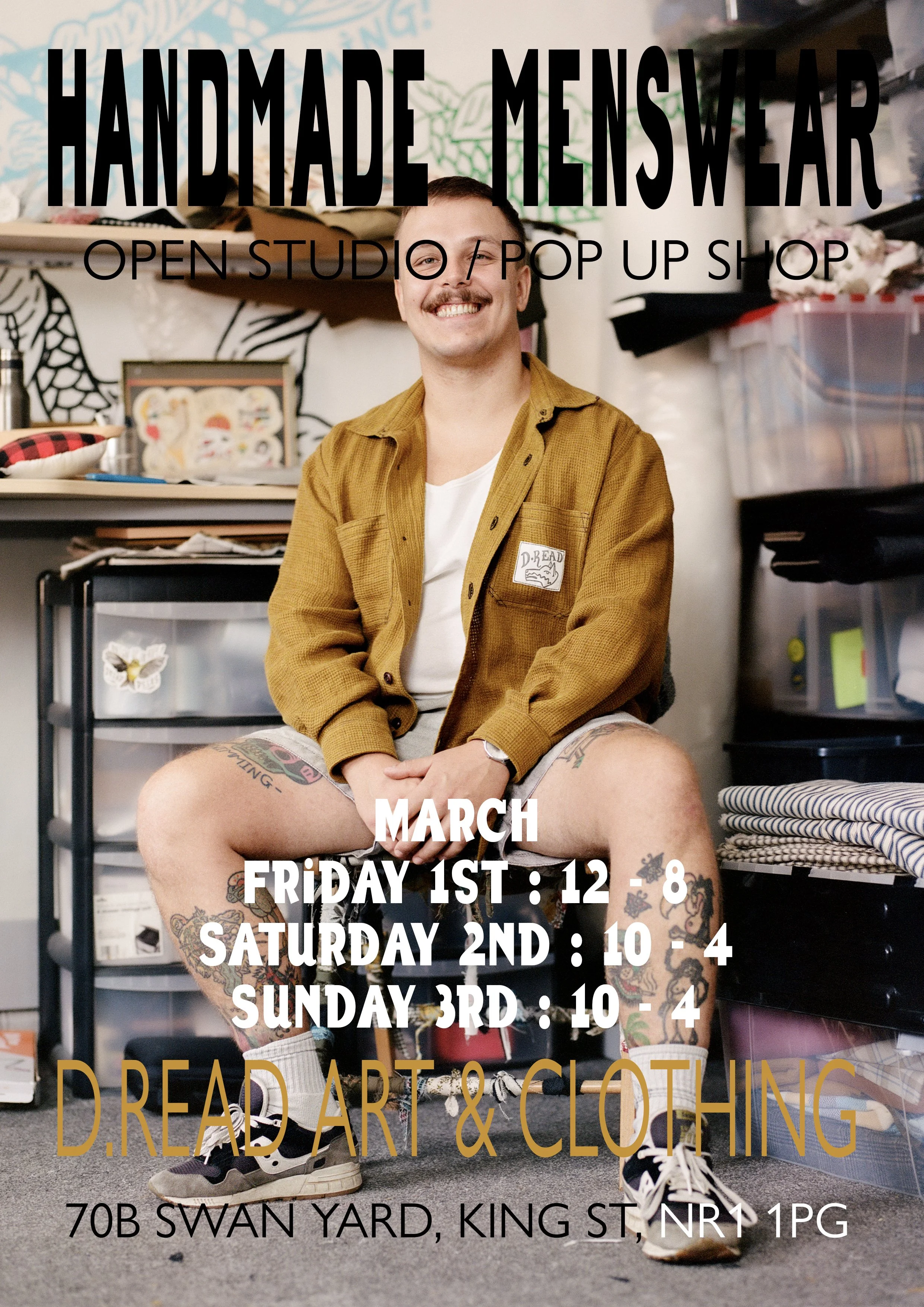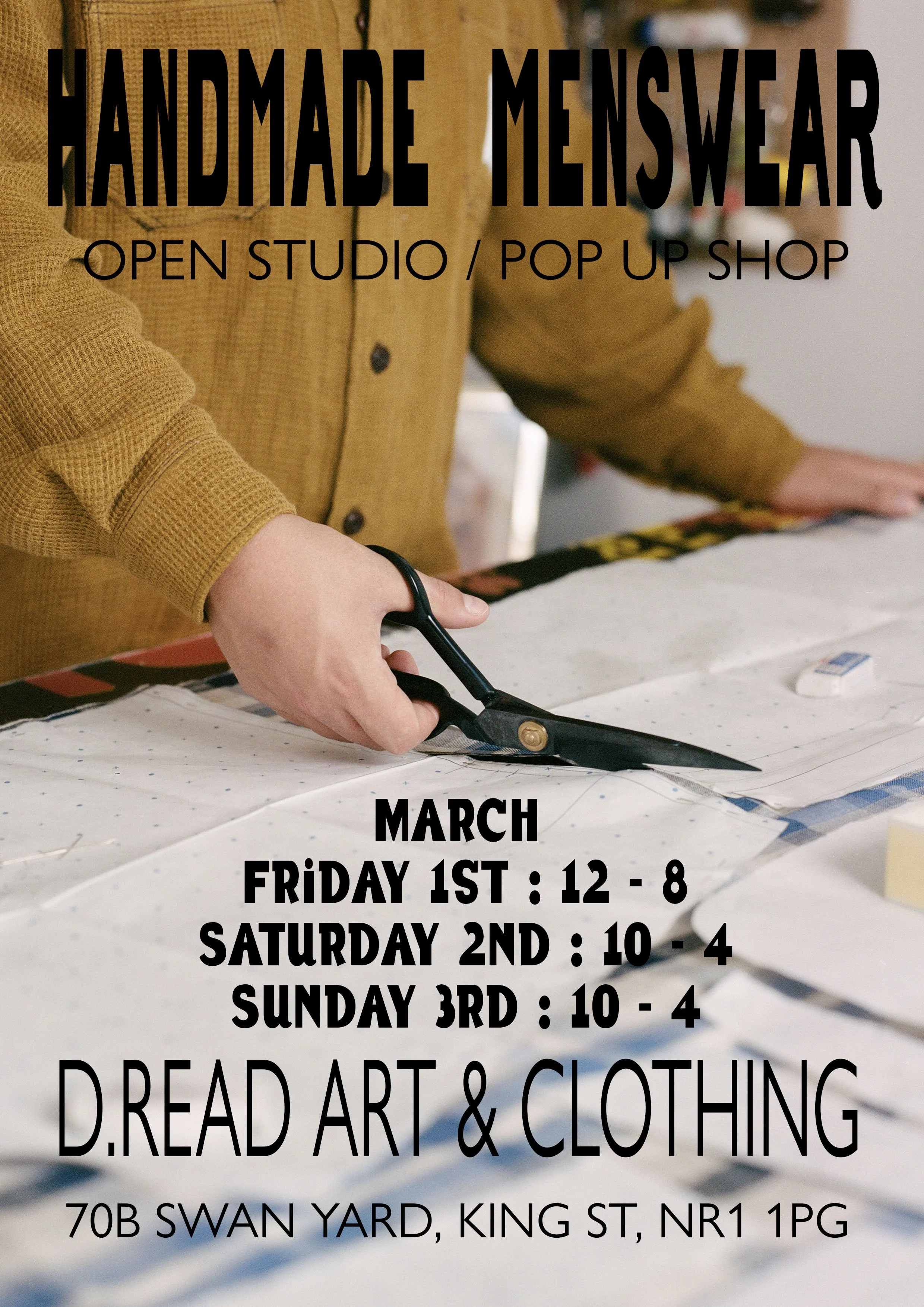 Inviting the general public, friends and customers into the studio for an Exhibition, Pop Up Shop and slight party. A celebration of the space and all of the clothes made within it. A selection of photography from over the years, limited edition prints, artwork and handmade clothing.