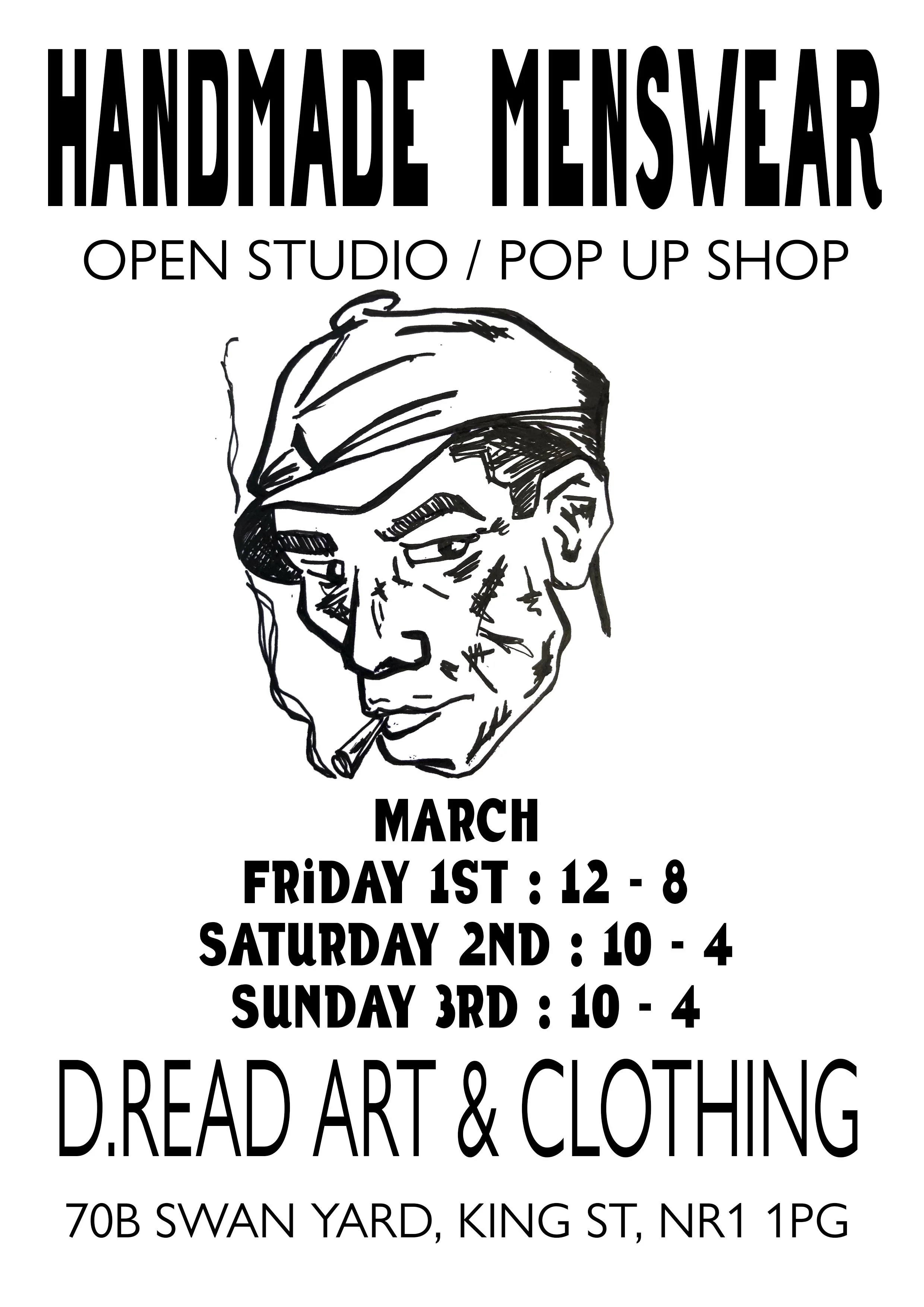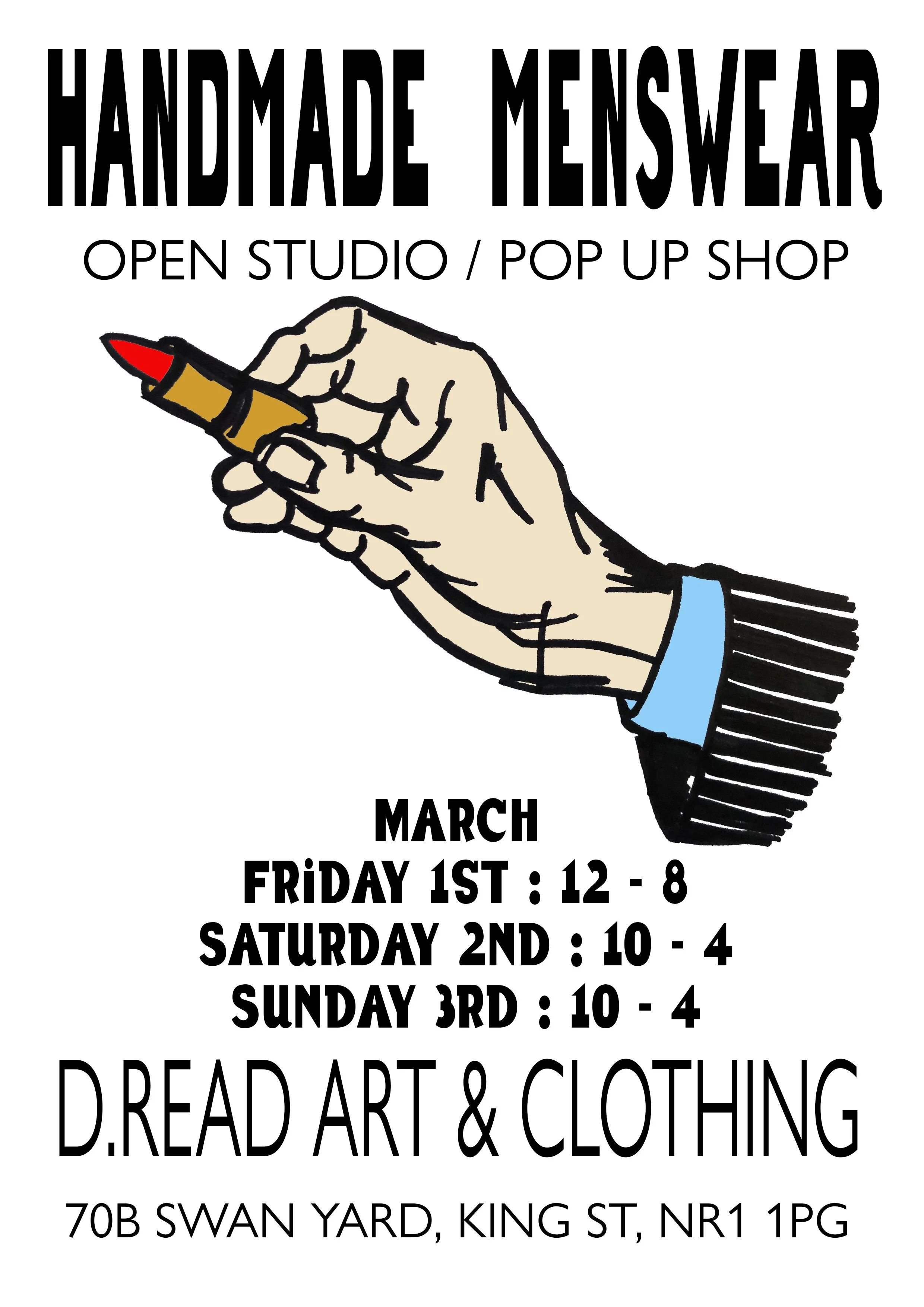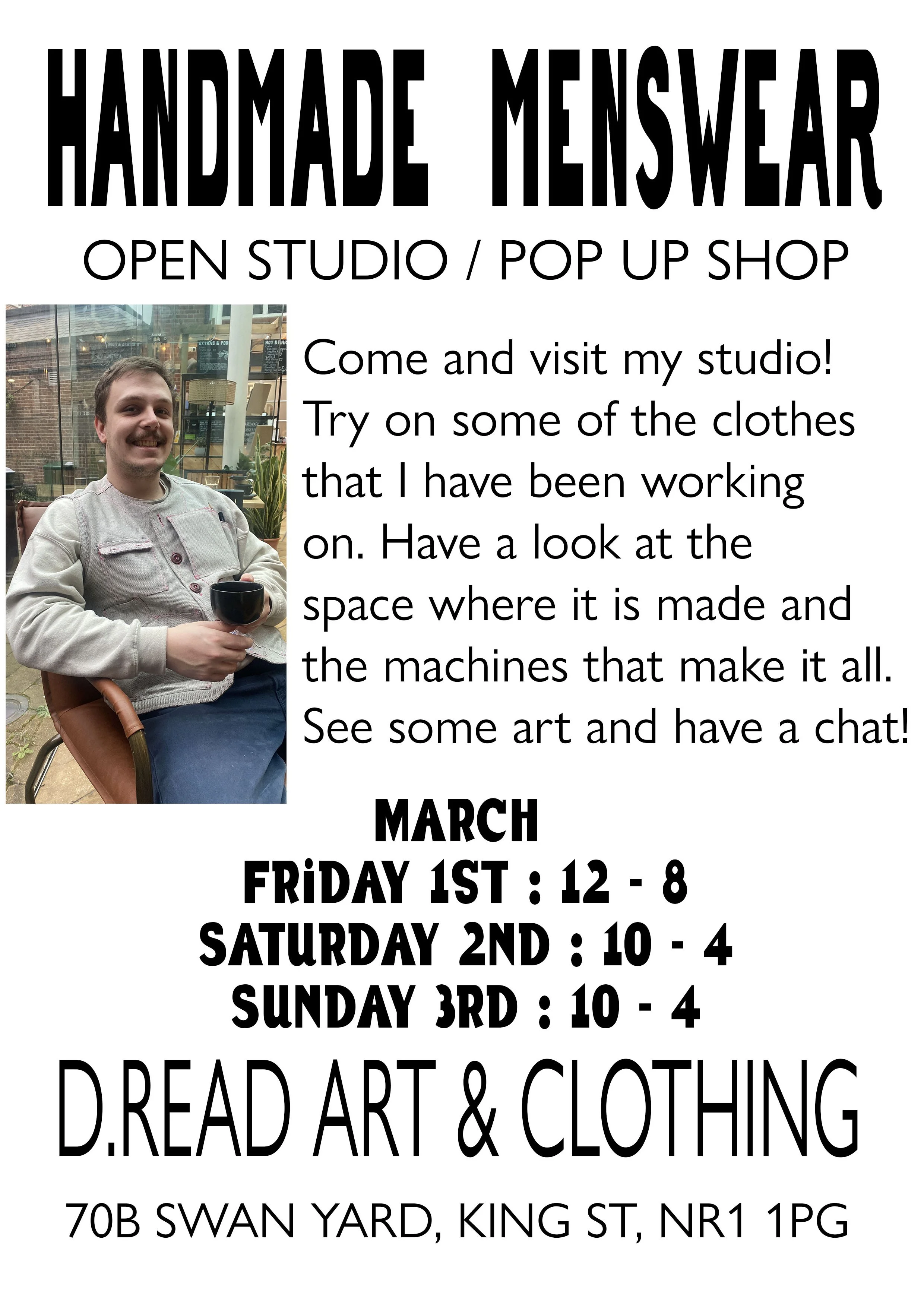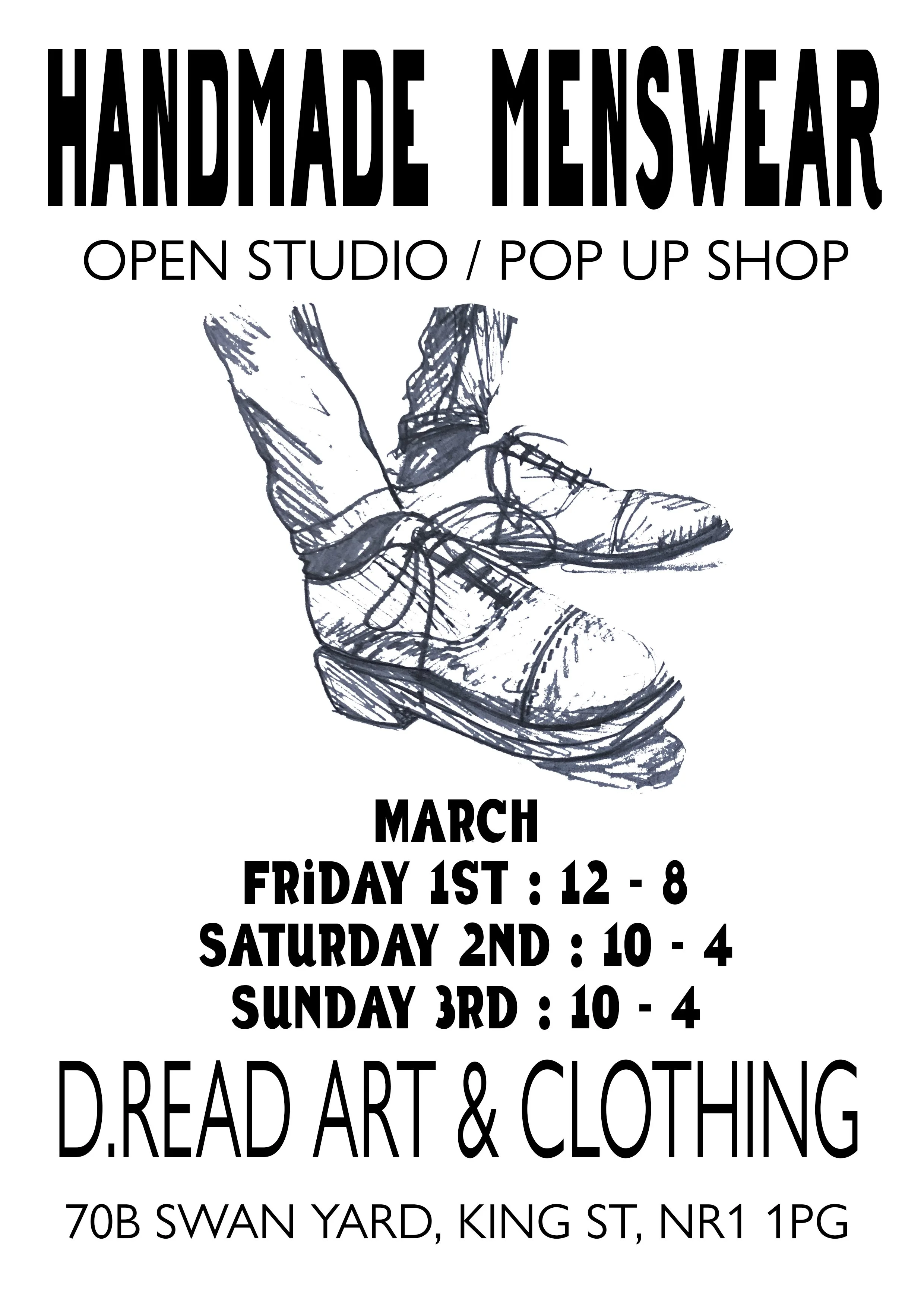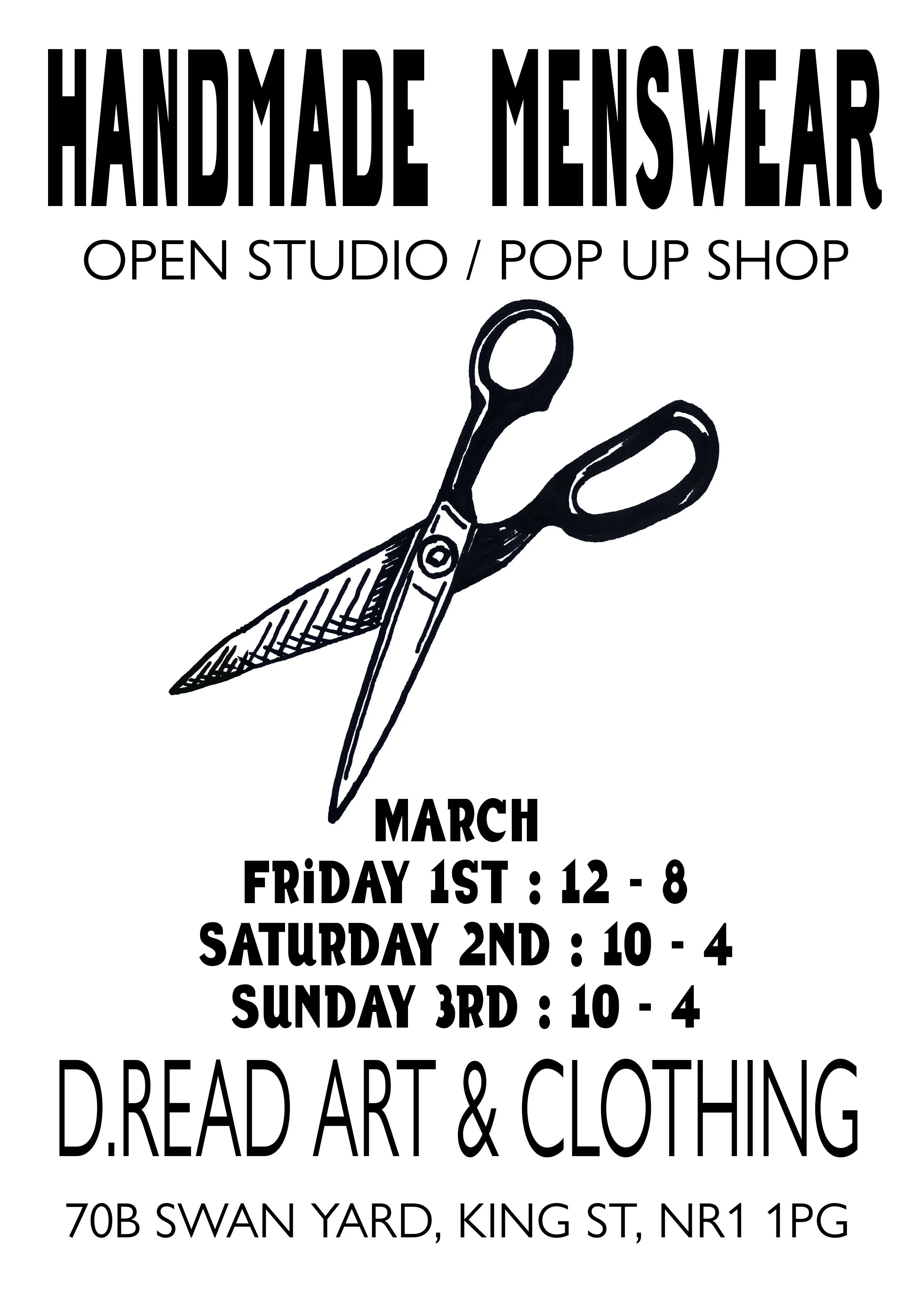 Inviting the general public, friends and customers into the studio for an Exhibition, Pop Up Shop and slight party. A celebration of the space and all of the clothes made within it. A selection of photography from over the years, limited edition prints, artwork and handmade clothing.