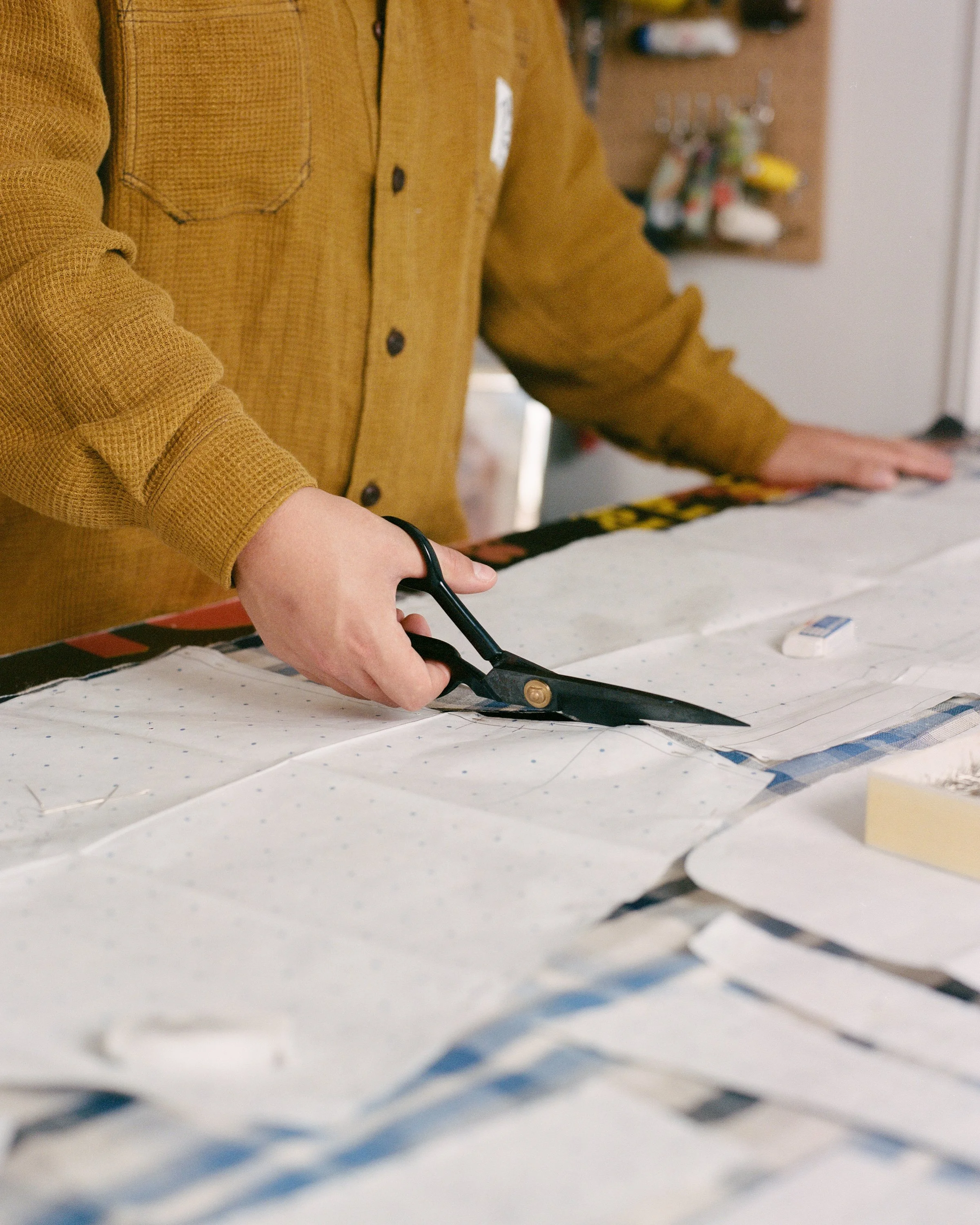 I invited Lewis Gant to my King Street studio to take some portrait shots of me in my workspace. I thought it would be fun to do a shoot surrounded by my machines in the space where I complete my work. I wore two of my favourite shirts from that years collection and a pair of shorts from the previous summer collection.